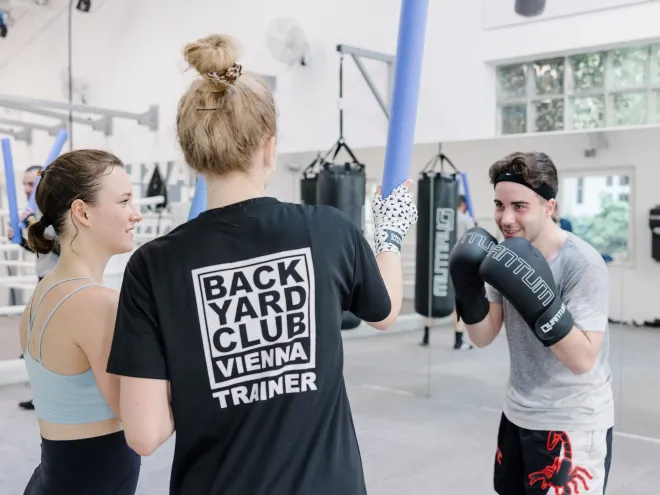 Backyard 1040Das klassische Backyard Fitnessbox Training für alle, die eine körperliche Herausforderung suchen und die Schönheit des Boxsports in einem geschützten Umfeld für sich entdecken wollen. Unsere Fitnessboxstunden beginnen immer mit einem Warm Up und Mobilisation, um die Gelenke und Muskeln auf das Training vorzubereiten. Je nach Trainer und den anwesenden Mitgliedern wird das Training mit verschiedenen Fitnessübungen, Schattenboxen, Boxtechnik, Übungen in der Partnerarbeit und am Boxsack gestaltet. Eines ist fix: in jeder Fitnessboxstunde gibt es eine Menge Spaß, Schwitzen und Schlagen ;) · Niveau: offenes Training für alle! Das Level wird an die anwesenden Mitglieder angepasst. · Jedes Training wird von einem unserer Trainer gestaltet und geführt - eigenständiges Trainieren außerhalb der Gruppe ist nicht erlaubt. · Bitte eigene Boxhandschuhe und Bandagen mitbringen! · Die Teilnehmerzahl des Training ist limitiert, also bitte unbedingt im Vorhinein anmelden. · Falls du doch nicht kommen kannst, melde dich bitte vom Training ab, damit andere Mitglieder einen Platz im Training bekommen.