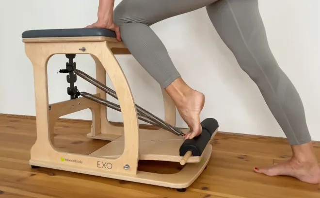 Pilates im HofUnser Wundachair Triotraining ist für alle geeignet, die ihr Körperwahrnehmung noch effiktiver schulen möchten, um die Übungen auf der Matte zu intensivieren. Die Pilates Grundprinzipien und Mattenübungen sollten bekannt sein und ein gewisses Fitnesslevel wird vorausgesetzt, aber du brauchst keine Erfahrung mit den Pilates Trainingsgeräten. Zusätzlich verwenden wir auch den Pilates Arc oder Spine Corrector um die Wirbelsäulenmobilität mit Feedback zu verbessern. Der Pilates Wunda Chair bietet im Vergleich zu Pilates-Mattenübungen eine Reihe zusätzlicher Herausforderungen, die das Training intensiver machen können. Er hilft vorallem das ‘Durchschummeln’, wie man es bei manchen Mattenübungen in der Gruppe macht, selbst zu bemerken bzw macht er das Schummeln beinahe unmöglich. Hier sind einige Faktoren, die das Training mit dem Wunda Chair anspruchsvoller machen: · Balance und Stabilität: Die erhöhte und verkleinerte Plattform erfordert eine besser Balance und Stabilität bei den Dir schon bekannten Mattenübungen in Rückenlage. · Konzentration und Koordination: Der Federwiderstandt des Pedals erfordert eine präzise Koordination und Konzentration zwischen den verschiedenen Muskelgruppen deines Körpers, die Du ohne Widerstsand oft kaum selbst spürst. Die korrekte Ausrichtung Deines Körper wird Dir bewusst gemacht. · Bewegungsumfang: Dehnungsübungen gegen den Federwiderstand helfen Dir einen größeren Bewegungsumfang zu erreichen als auf der Matte. Deine Muskeln werden in unterschiedlichen Positionen und Winkeln aktiviert, was zu einer verbesserten Flexibilität und Mobilität führen kann. 🌿 Solltest Du alleine eingebucht sein, bekommst Du ein 30min Solo-Training oder Du kannst NUR €20,- vor Ort aufzahlen und bekommst ein supergünstiges Solo-Training. 🙏 Danke für Dein Verständnis.