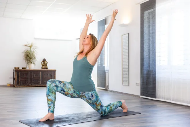 Dein Yoga LeoHot Vinyasa Flow Yoga ist ein dynamisches und fließendes Workout, das aus einer Vielzahl von Körperhaltungen besteht. Im Gegensatz zur festen Hot Yoga-Reihe variiert die Abfolge der Haltungen von Stunde zu Stunde. Die Bewegungen werden durch den Atem angeregt, sodass du die Posen geschmeidig und nahtlos ausführen kannst. Die Raumtemperatur beträgt etwa 33–35 °C. NICHT FÜR SCHWANGERE GEEIGNET! Ein paar Informationen: · Bitte ca. 15 min vor Beginn im Studio sein. · Wenn du zu spät kommst und die Yogaraum-Tür ist bereits geschlossen, bitte nicht mehr eintreten! Danke. · 1,5 Std vorher nichts oder nur etwas leichtes essen. · Matte oder Handtuch Verleih: je 2 € (beides zus. 3€)